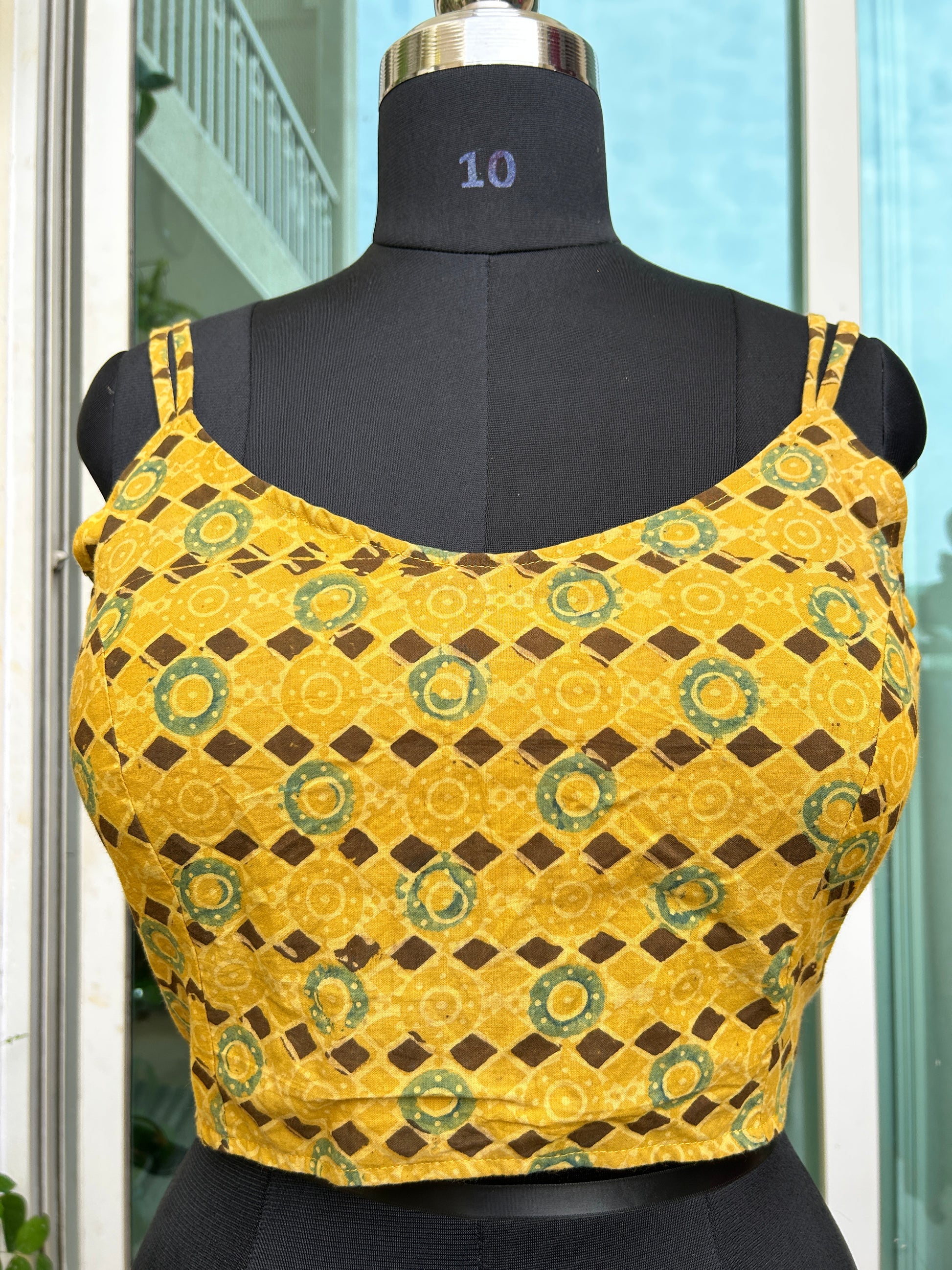Ajrakh cotton noodle straps sleeveless blouse