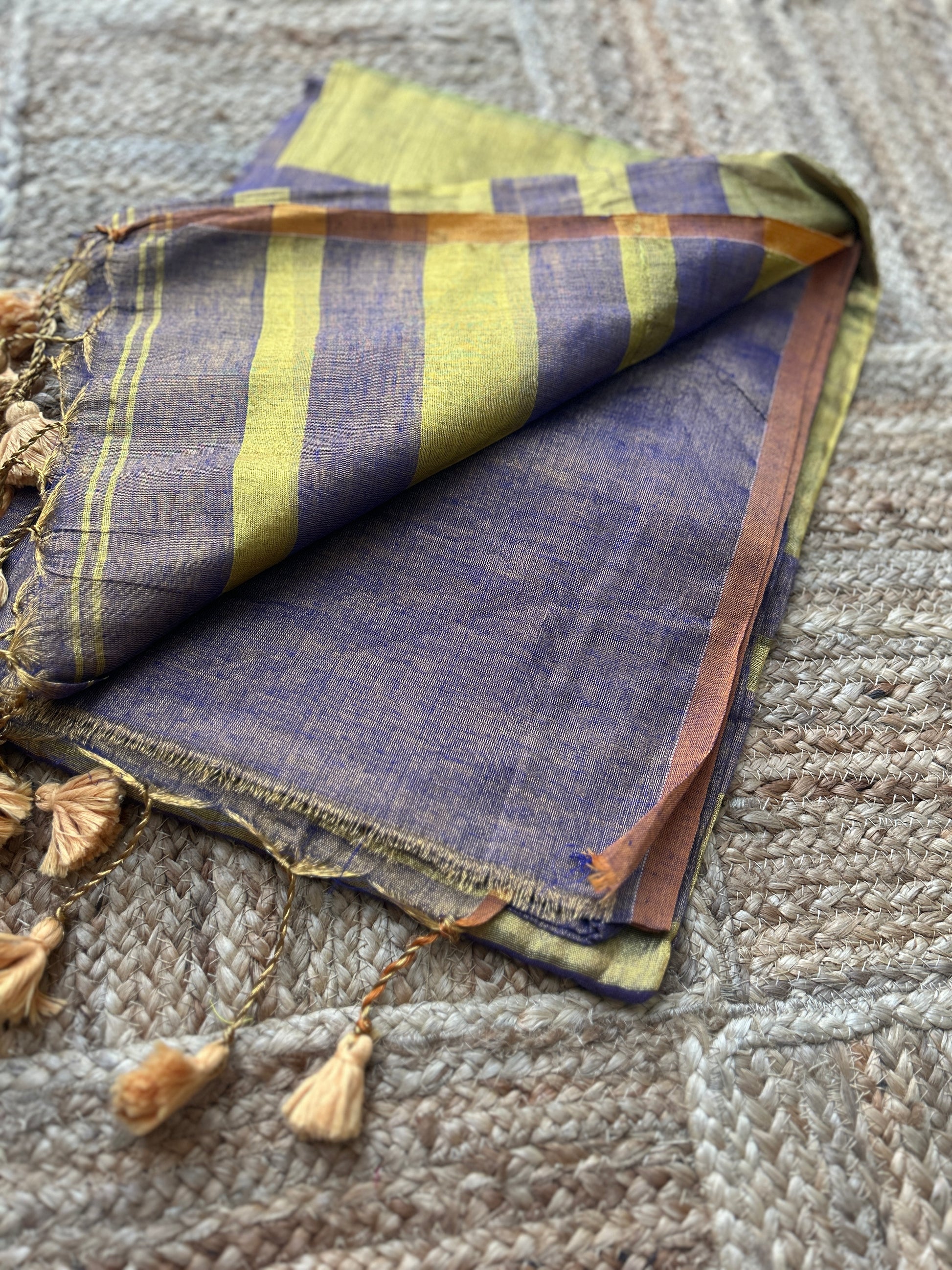 - Linen Tissue Silk Saree with Golden zari pallu