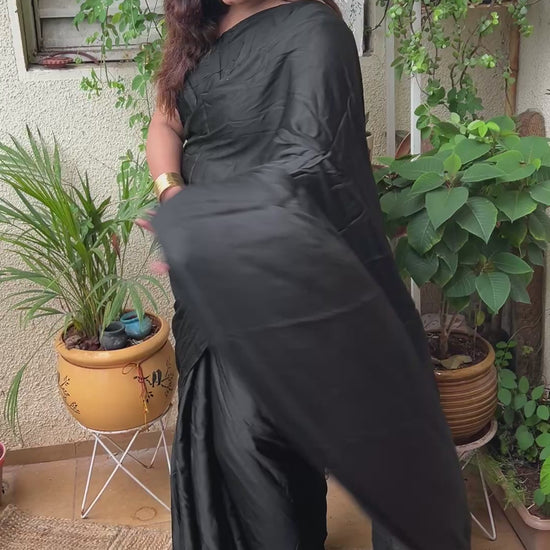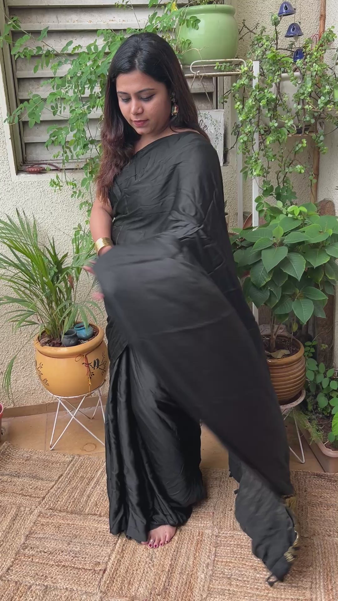 - Pure Modal Silk saree with lagdi pallu - Black color with Golden lagadi patta.