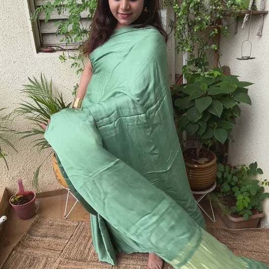- Pure Modal Silk saree with lagdi pallu - Pista green color with Golden lagadi patta.
